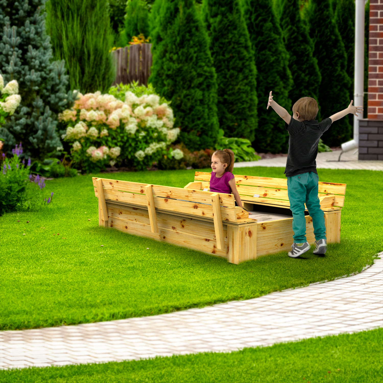 De zandbak is niet voorzien van een bodem, zandbak accessoires of speelzand !