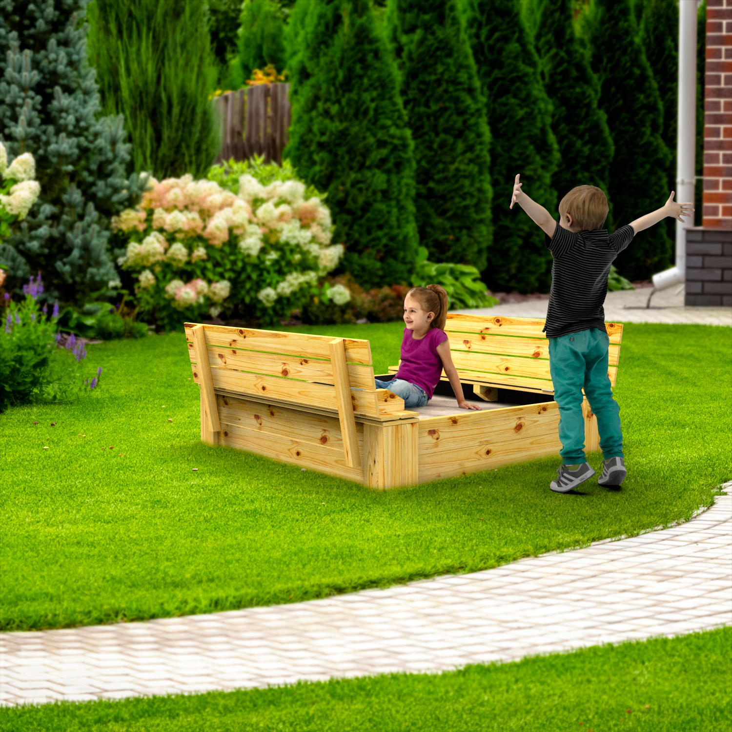 De zandbak is niet voorzien van een bodem, zandbak accessoires of speelzand !