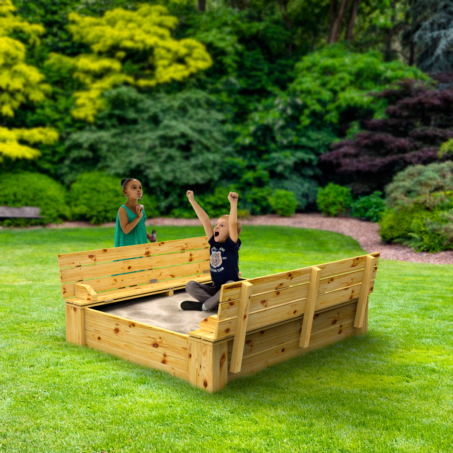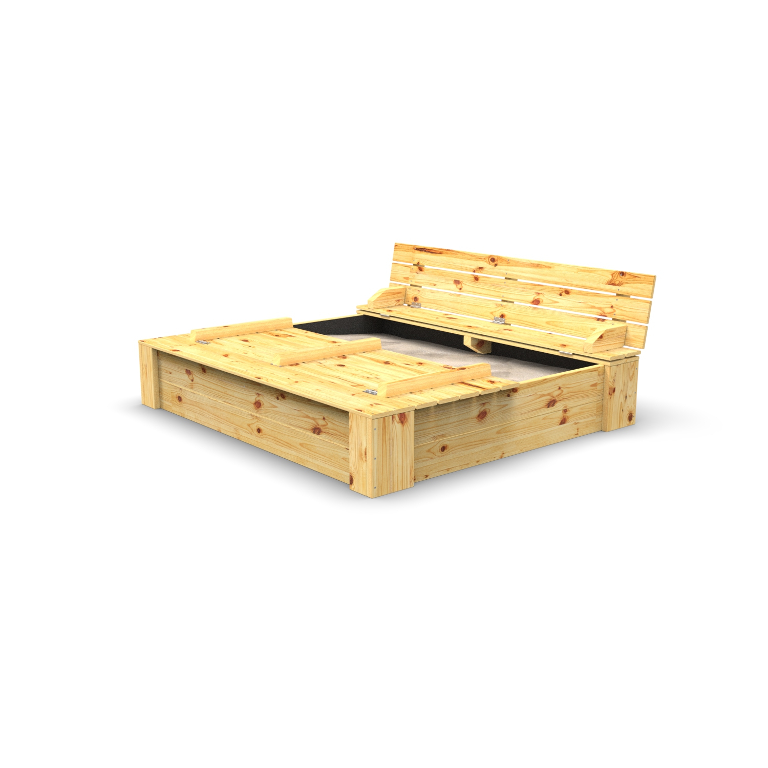 De Snuggly Sandhill is voorzien van een zit / Klapdeksel, waarbij zelfs de kleinste kinderen het deksel van deze zandbak zelfstandig kunnen openen of sluiten. Als het zandbakdeksel gesloten is, is er een veiligheidsmarge tussen beide deksel, zodat de kinderen hun vingers niet kunnen klemmen. Er bestaat ook een optie om extra handvaten in een mooie kleur te monteren, zodat je het deksel van de zandbak nog makkelijker kan openen of sluiten.